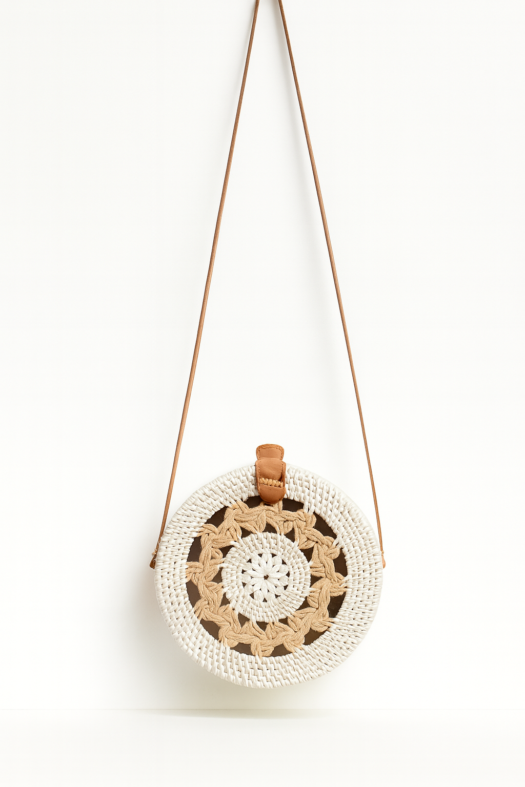 Complete your bohemian look with the world-famous Bali Round Rattan Bag. Handcrafted by local artisans using traditional Ata grass, this bag is a masterpiece of durability and island style.